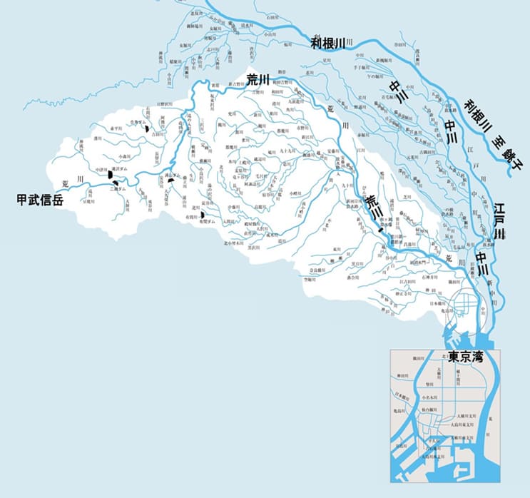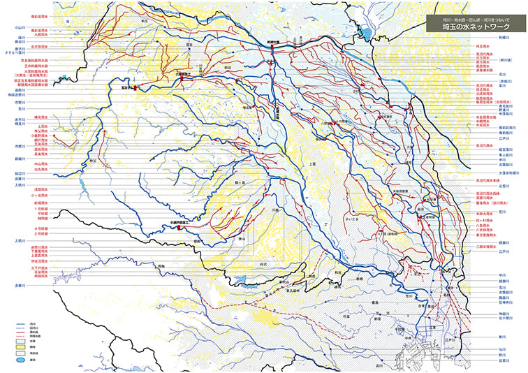 それに高度成長期以降必要になった埼玉と東京の水道用水の水路「武蔵水路」を加えました。